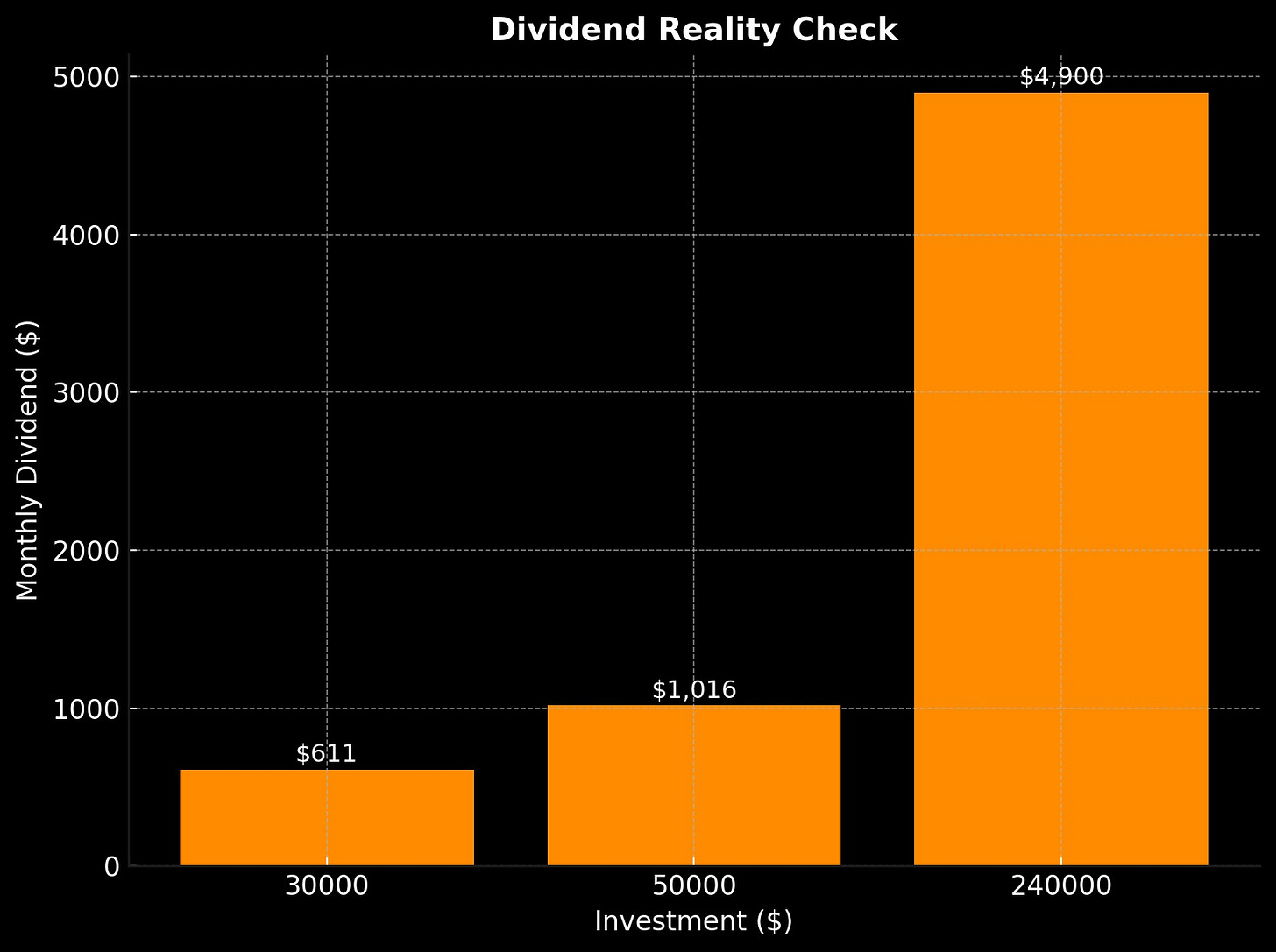 To hit $4,900/month, you’d need ≈ $240,000 invested